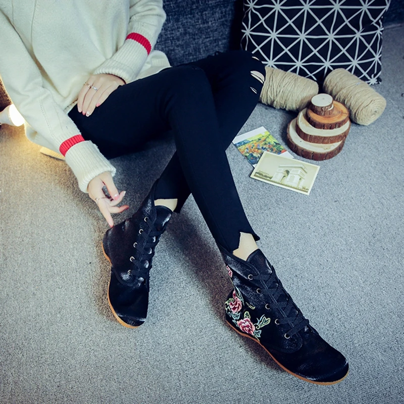 Женские бархатные ботинки из хлопчатобумажной ткани на плоской подошве, женские повседневные короткие ботильоны на шнуровке, мягкие осенне-зимние ботинки в стиле ретро с цветочной вышивкой