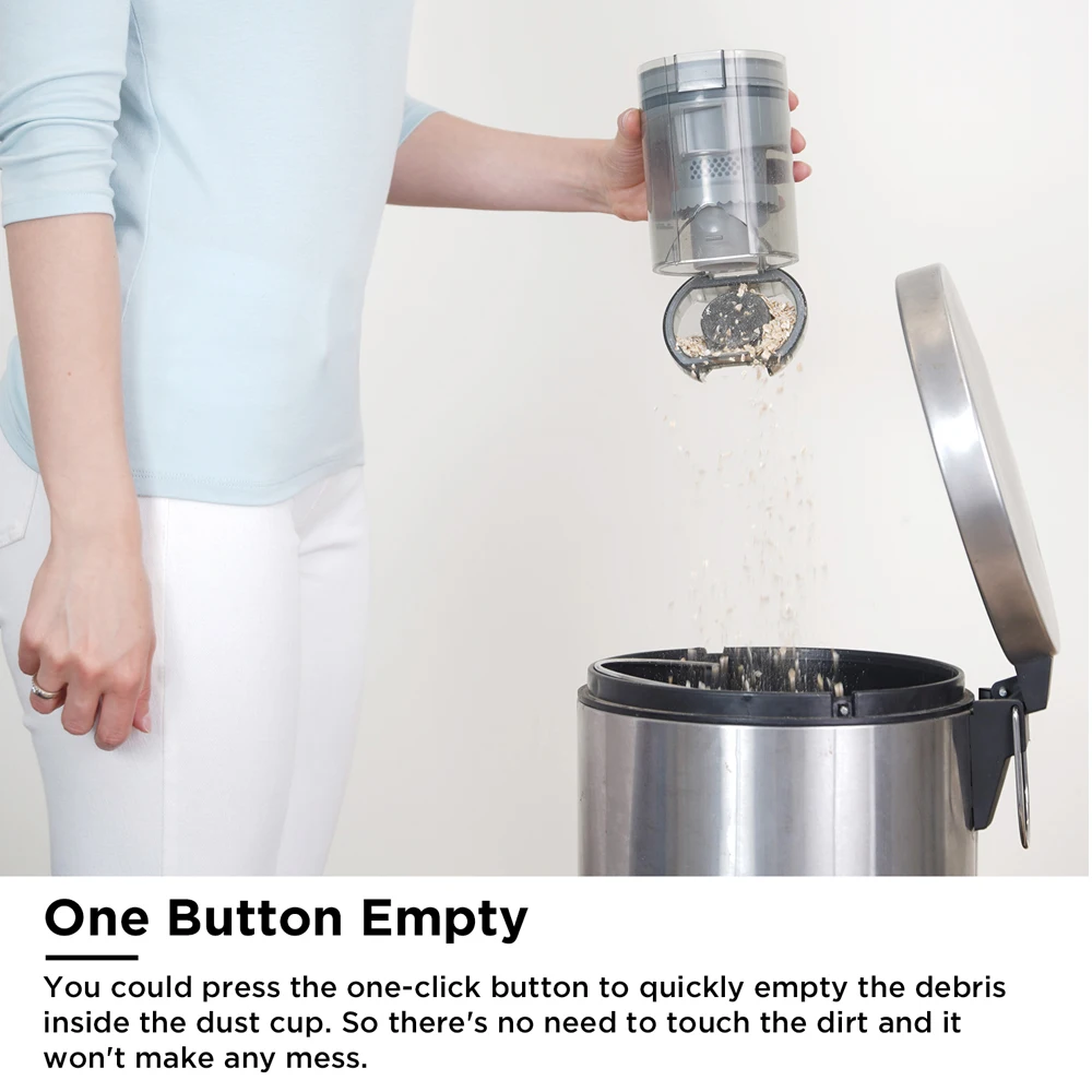 купили из-за интереса, и теперь это не заменимый помощник. Детки что-то рассыпали, достала, включила, по быстрому пропылесосила и готово, ни каких сборок и разборов и тырканий в розетку как в старом на колесиках. При долгой уборке рука не устает, не нужно нагибаться спина не напрягается. Есть индикация зарядки, гадать не придется когда он выключится или на сколько хватит. Контейнер достается и моется легко.