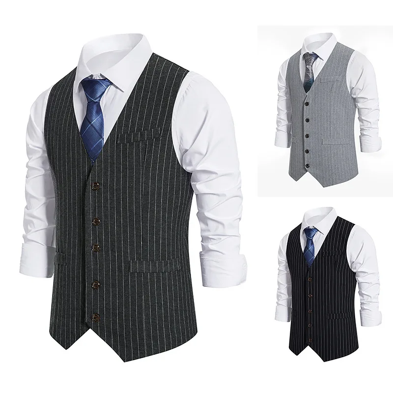 Мужской деловой однобортный жилет в полоску, повседневный винтажный жилет, осень 2022