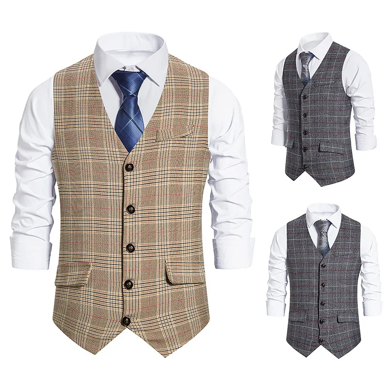 Жилет мужской Клетчатый однобортный, в стиле ретро, осень 2022
