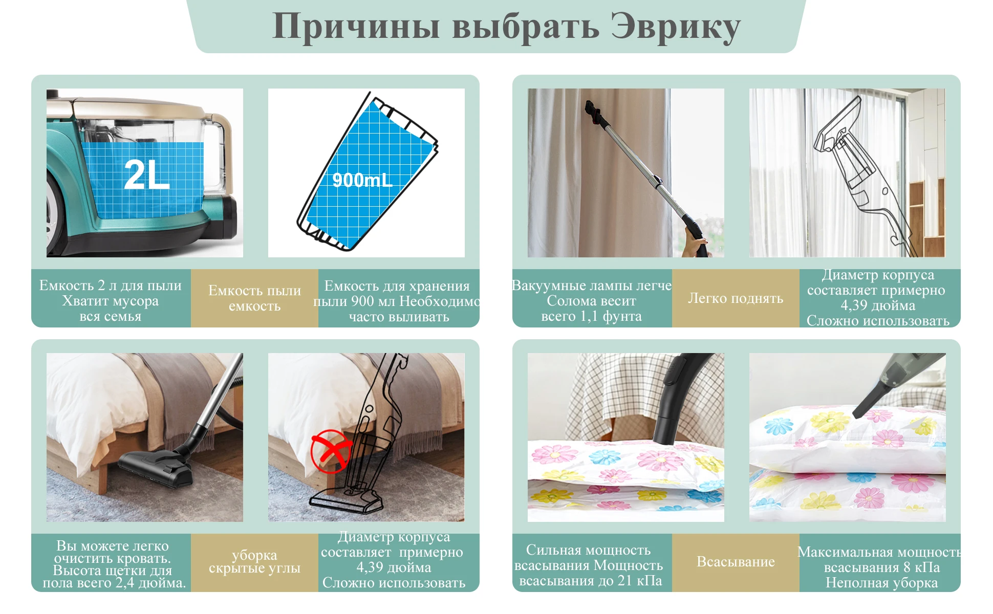 Suction power up to 21Kpa (RU)