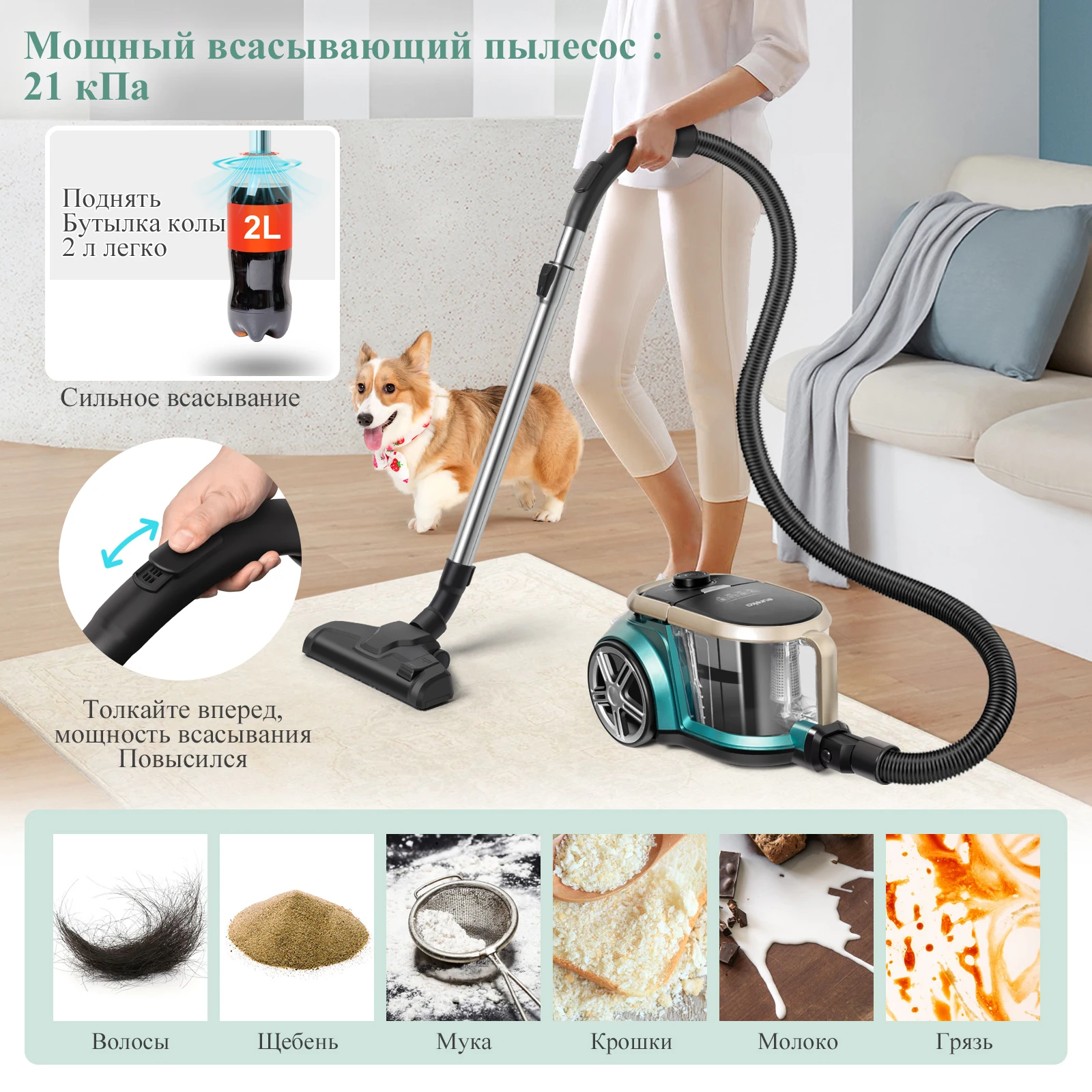 Powerful suction vacuum cleaner 21Kpa (RU)