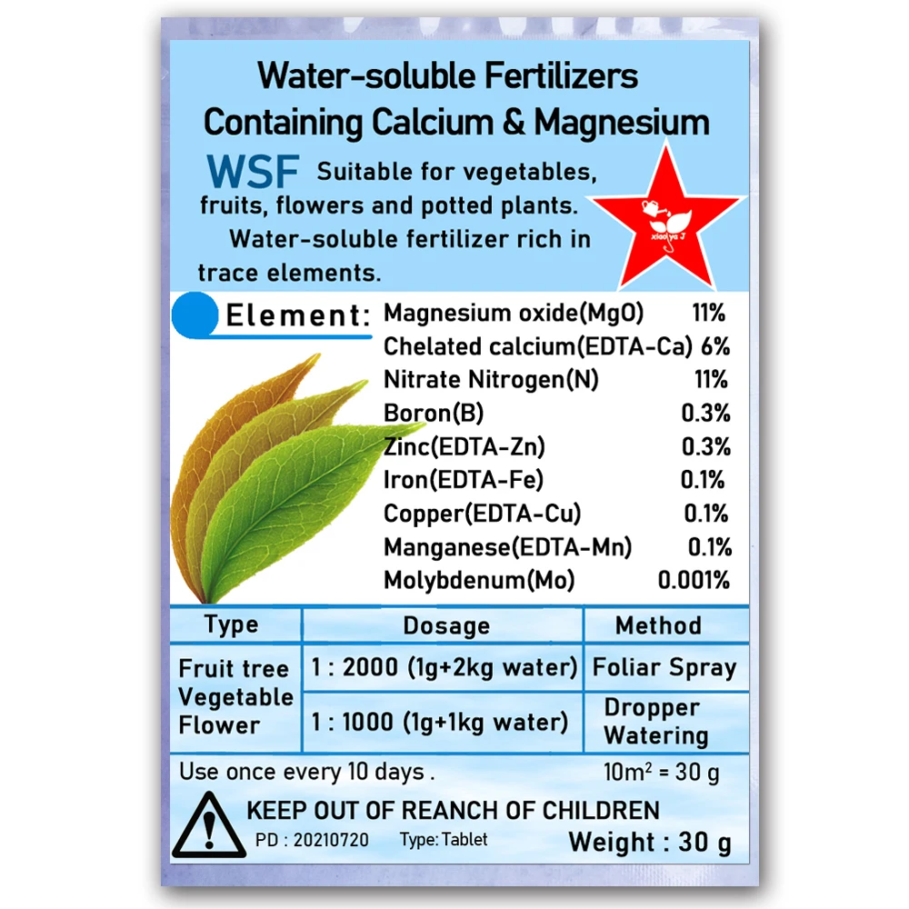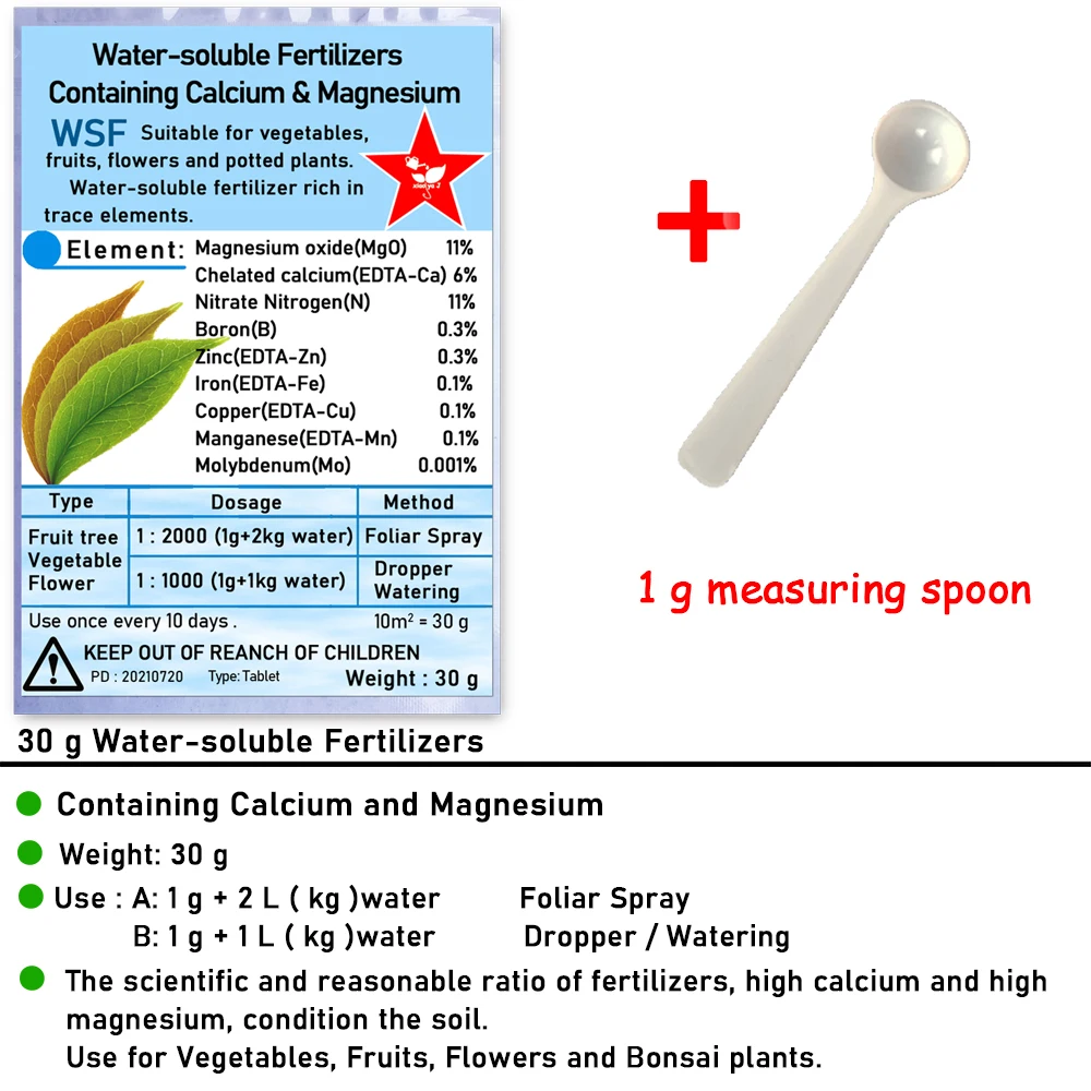 Водорастворимые удобрения WSF с добавками кальция и магния для сада, 30 г