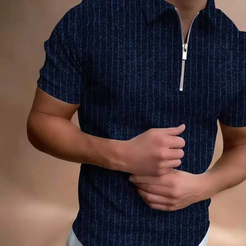 ВеснаЛето 2021 мужская рубашка-поло в полоску с лацканами на молнии...