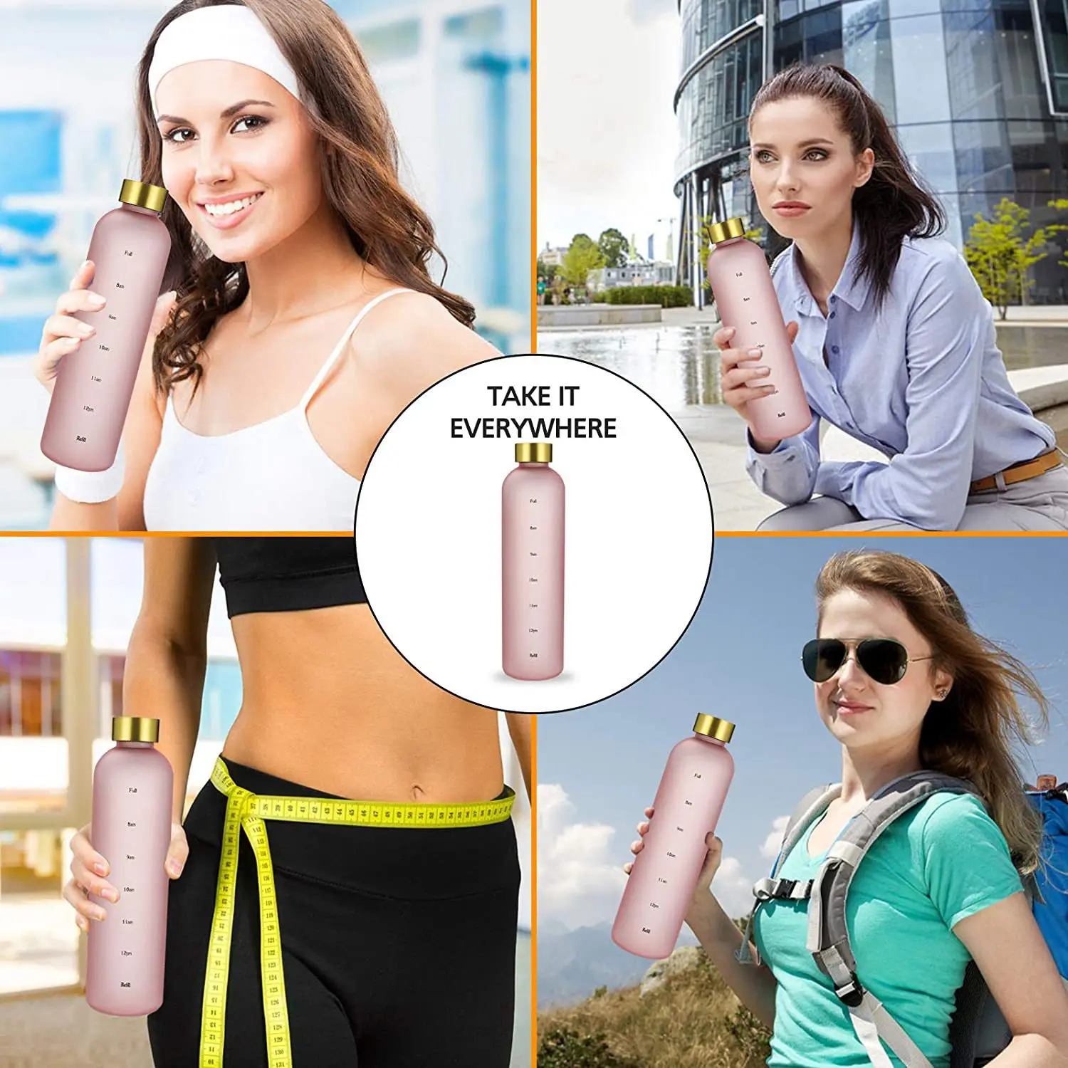 Пластиковая объемная чашка, прозрачная матовая чашка для воды большой емкости, медная модель с маркером времени, 1000 мл