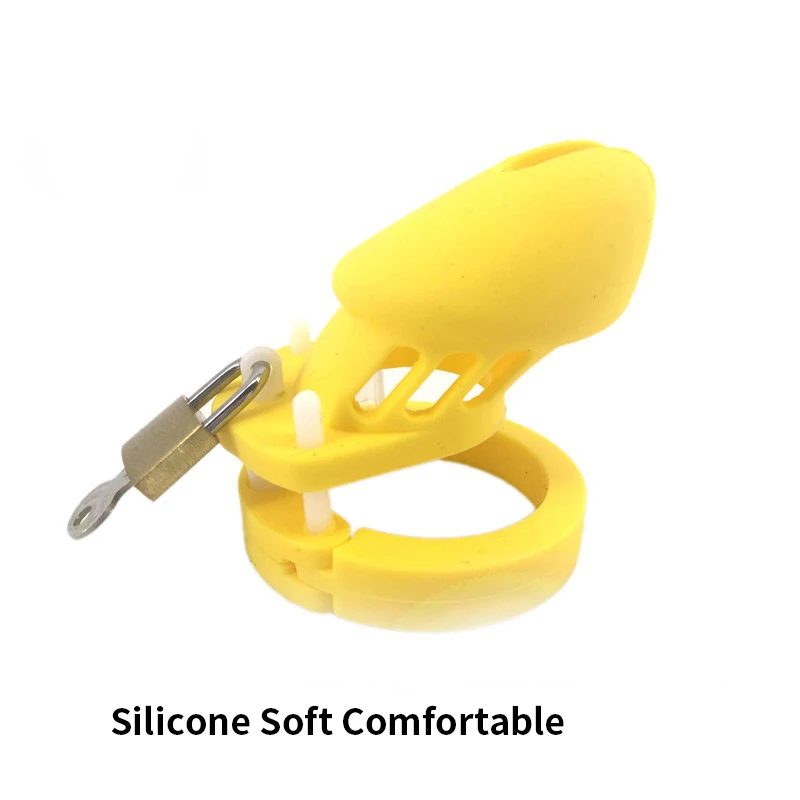Мягкая силиконовая клетка целомудрия SMMQ, желтая Мужская клетка для пениса CB6000, секс-игрушка для пар, флирт, кольца пяти размеров, интимное изделие для взрослых