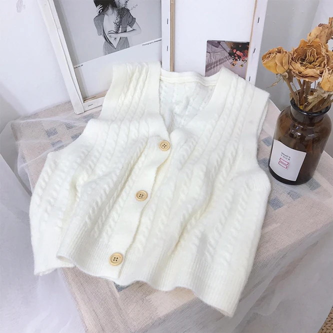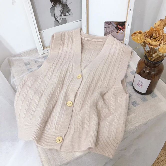 Однотонный вязаный однобортный Кардиган с V-образным вырезом, жилет, женский жакет в стиле Хань, ретро жилет для девушек, для колледжа, бежевого цвета, весна-осень 2021