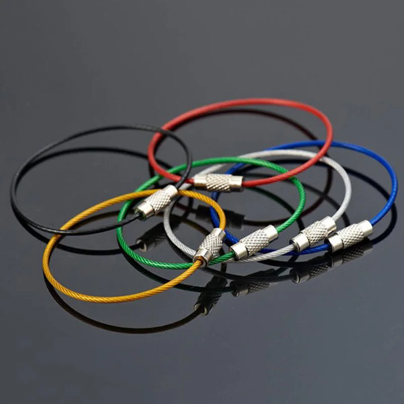 5 шт. 1,5*150 мм, цветной провод из нержавеющей стали, брелок для ключей, петля для кабелей, винтовой замок, веревка, брелок, кольца для ключей, уличный инструмент
