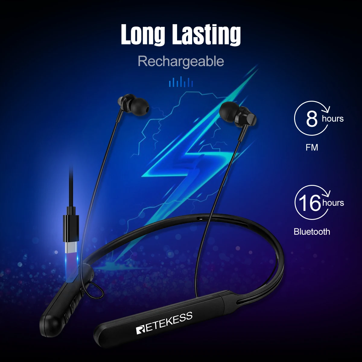 Retekess TR108 Bluetooth шейные Спортивные Беспроводные наушники fm-радио 16 часов прослушивания, встроенный микрофон