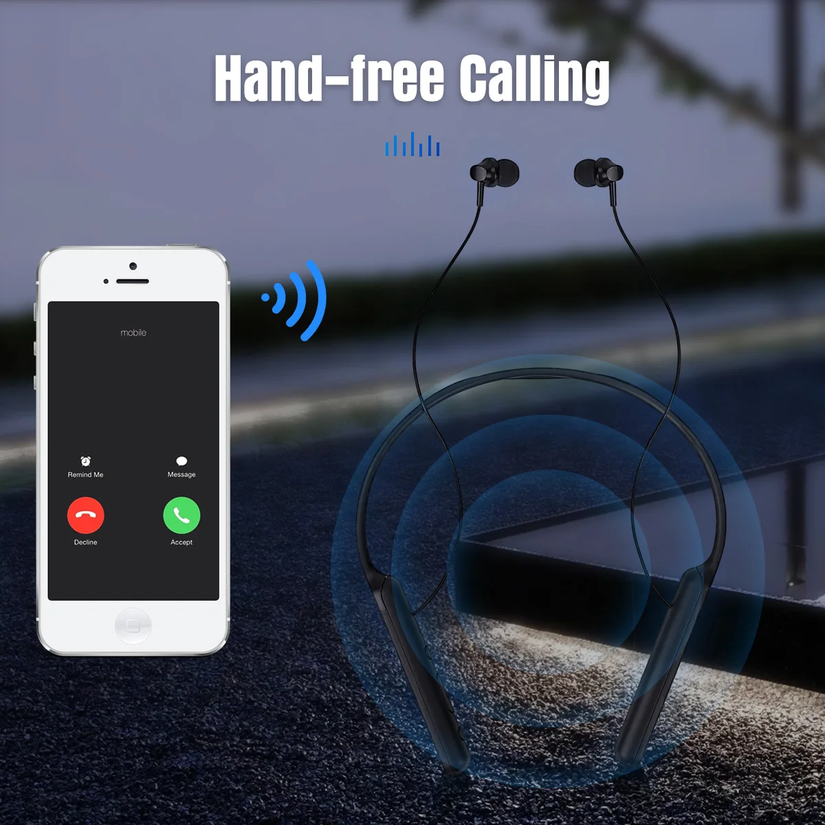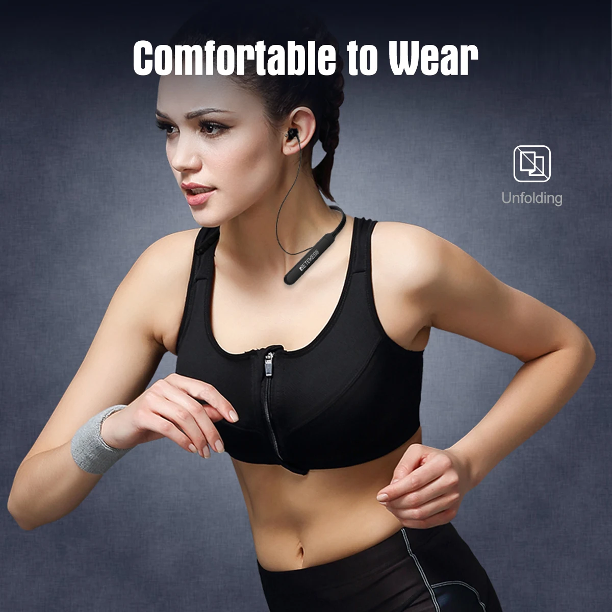 7. Удобно носить:Эти Беспроводные наушники с шейным ободком имеют особый дизайн и приятны при прикосновении, которые удобно носить. А также ушные затычки также снижают шум. Изделие нельзя сложить.