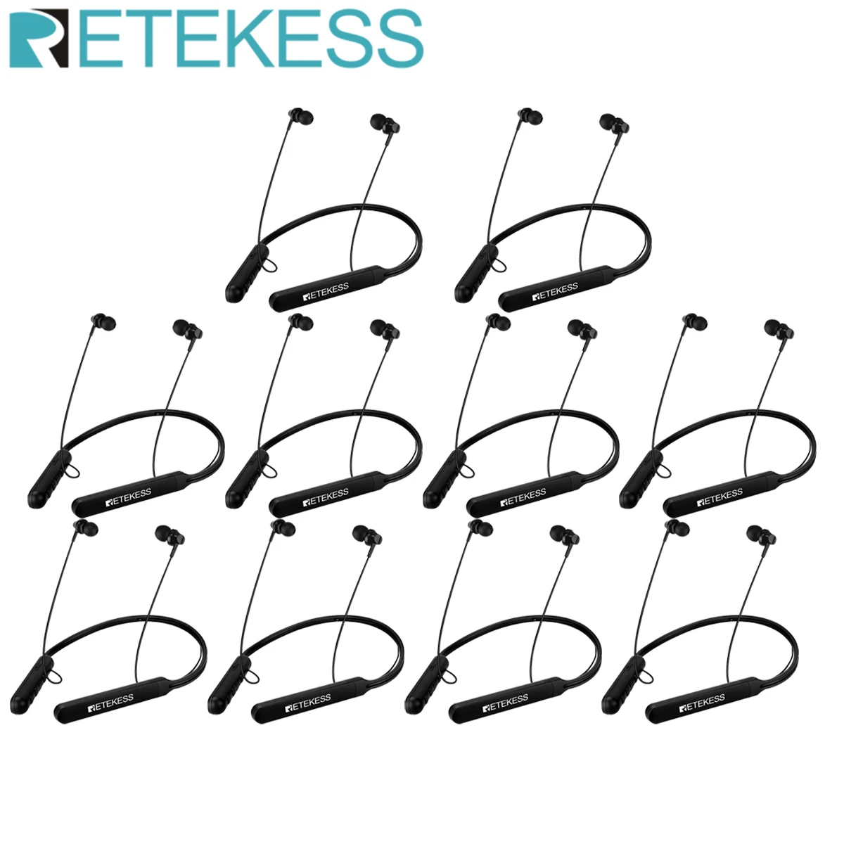 Спортивные Беспроводные наушники Retekess 10 шт. TR108 FM Bluetooth с шейным ремешком, 16 часов прослушивания, встроенный микрофон, для бега