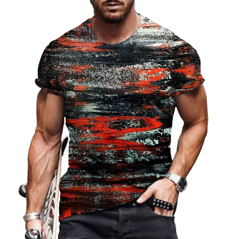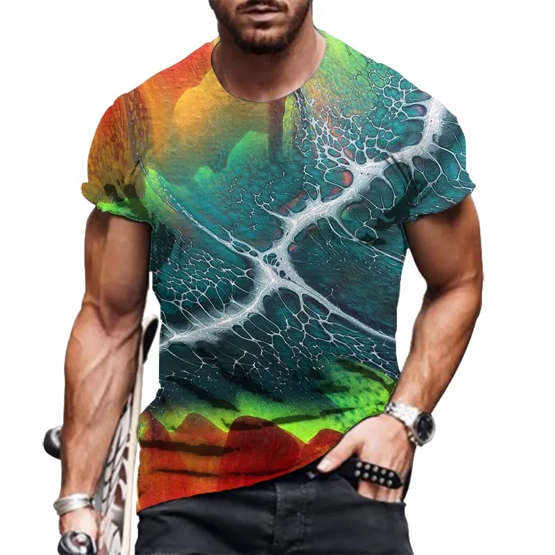 Футболка мужская оверсайз, летняя стандартная, с абстрактным принто...