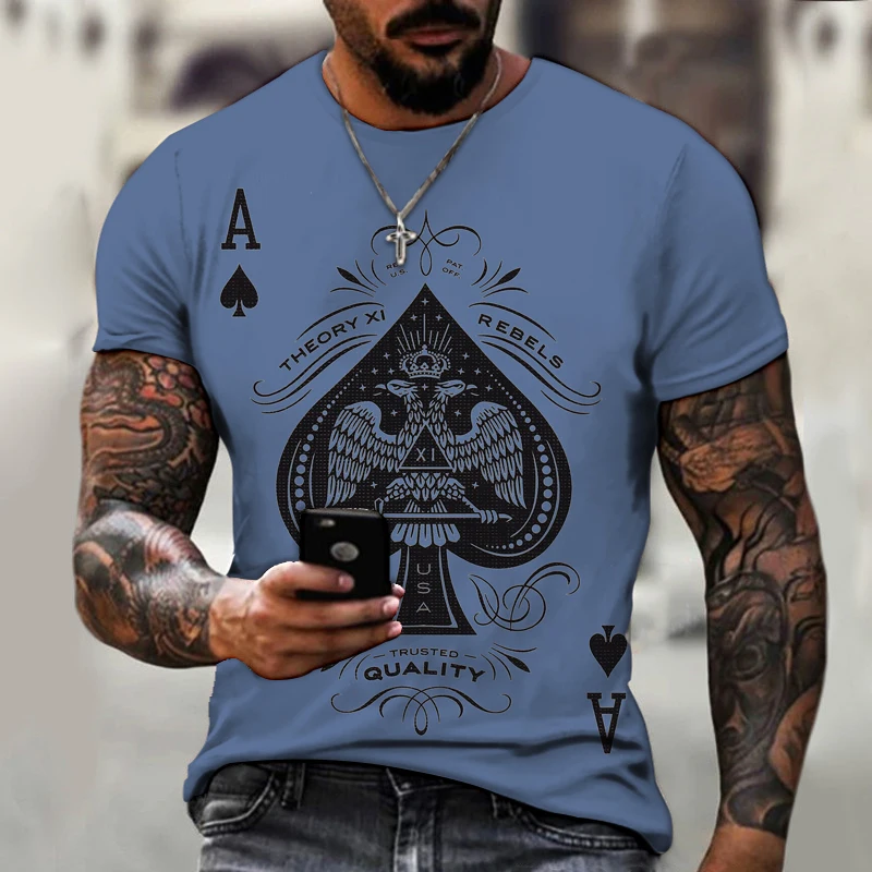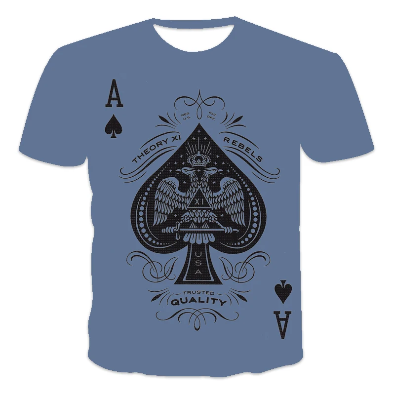 Мужская карточка для покера, 3D цифровой рисунок, модный тренд с коротким рукавом, повседневный тренд, лето 2021