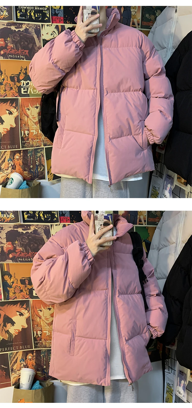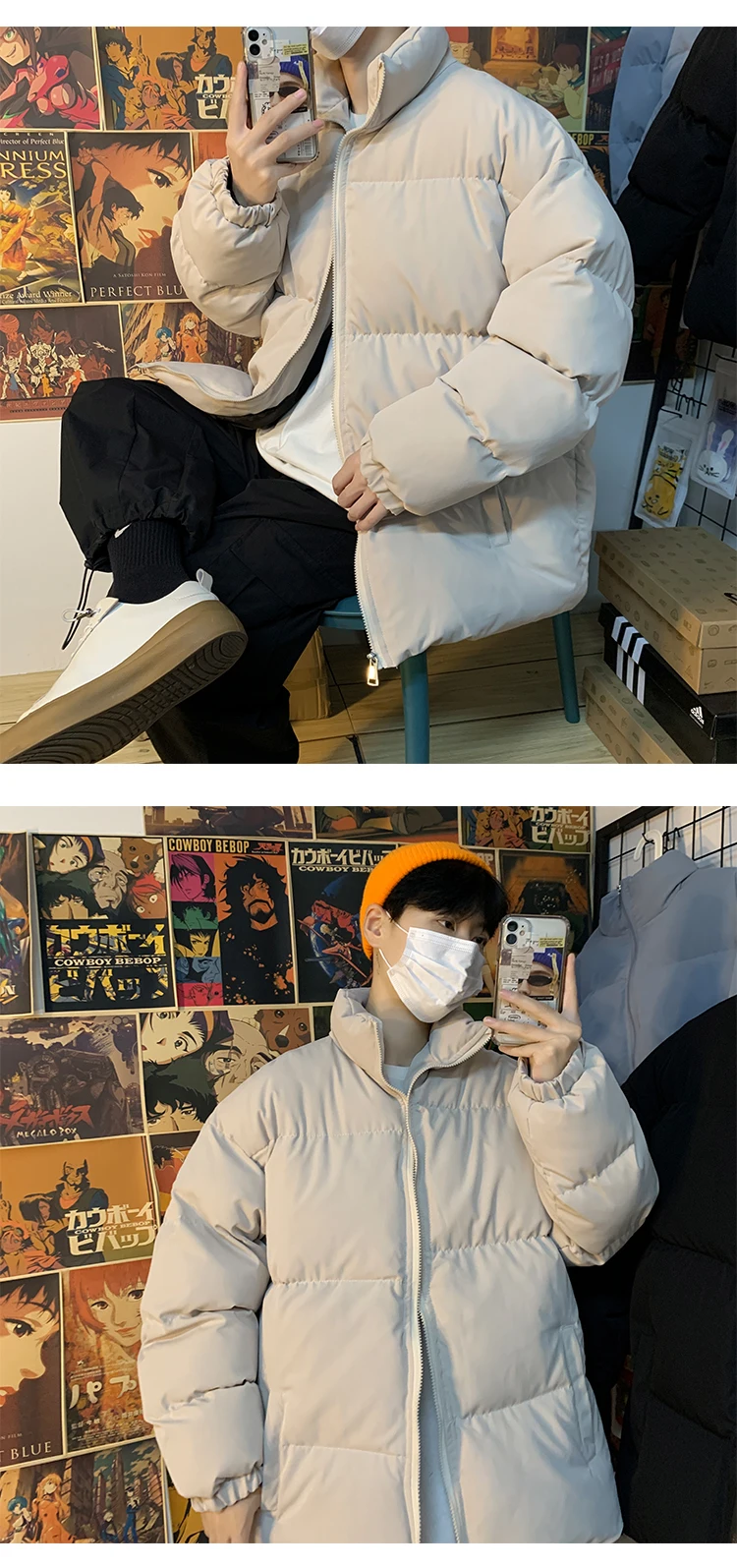Мужская зимняя пуховая куртка с воротником-стойкой, в стиле Харадзюку