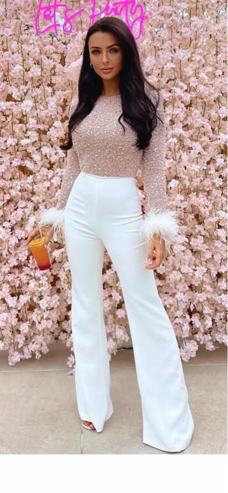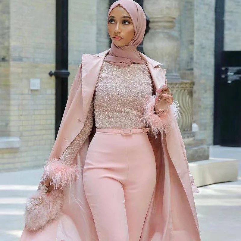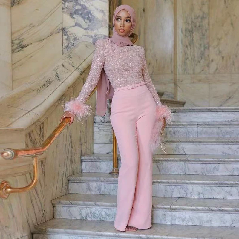Женский вечерний комбинезон с бусинами, розовый комбинезон с длинными рукавами и перьями, одежда для особых случаев, одежда для выпускного вечера, 2022