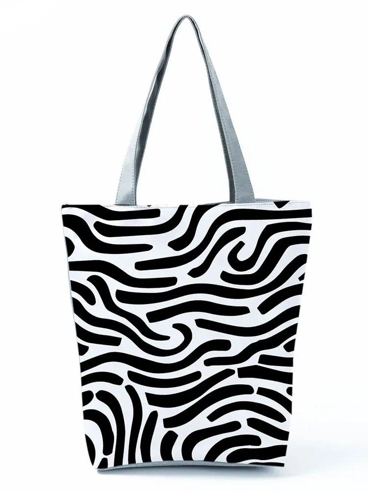 Сумка женская многоразовая с принтом зебры, модный экологически чистый тоут для покупок с леопардовым принтом, вместительная стильная сумочка на плечо, цвет черный