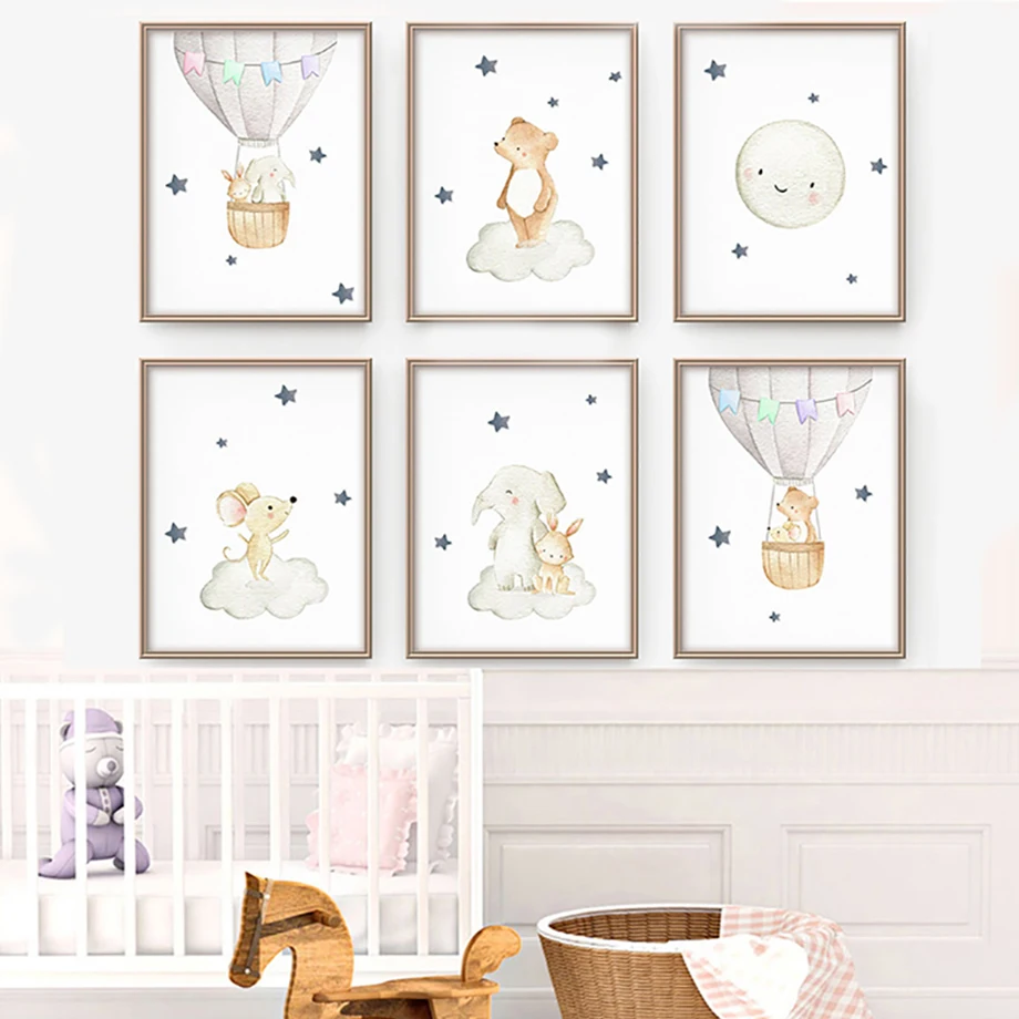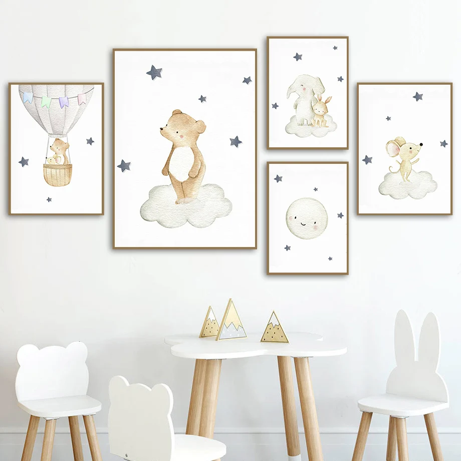 Кролик коала Слон Олень енот облако Луна настенная Картина на холст...