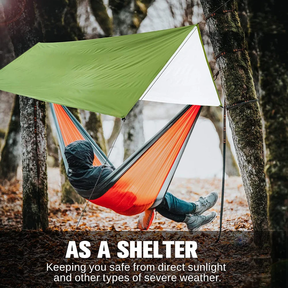 Прочный, водонепроницаемый и солнцезащитный-наш водонепроницаемый и непромокаемый гамак изготовлен из неровного нейлона 210t, что делает его более прочным, износостойким и устойчивым к проколу. Кроме того, внутренний Серебряный слой обеспечивает УФ-защиту на солнце.