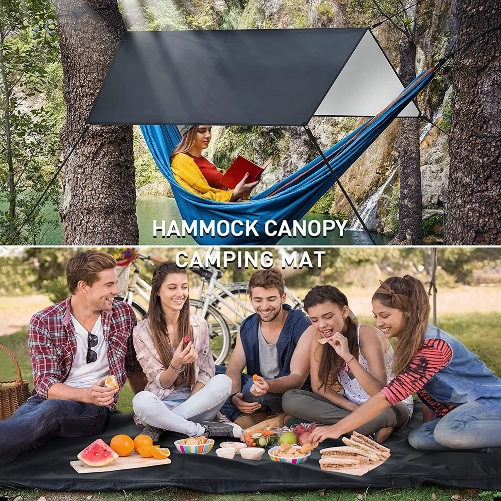 Многоцелевой: тент брезент может использоваться в качестве непромокаемого гамака, тента, тента, непромокаемого сарая, одеяла для пикника, пляжного одеяла, влагостойкого туристического коврика, пляжного тента и парка, тента, И т. д.