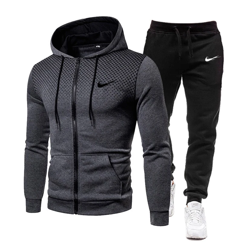 Мужской спортивный костюм на молнии, повседневный костюм из двух пр...