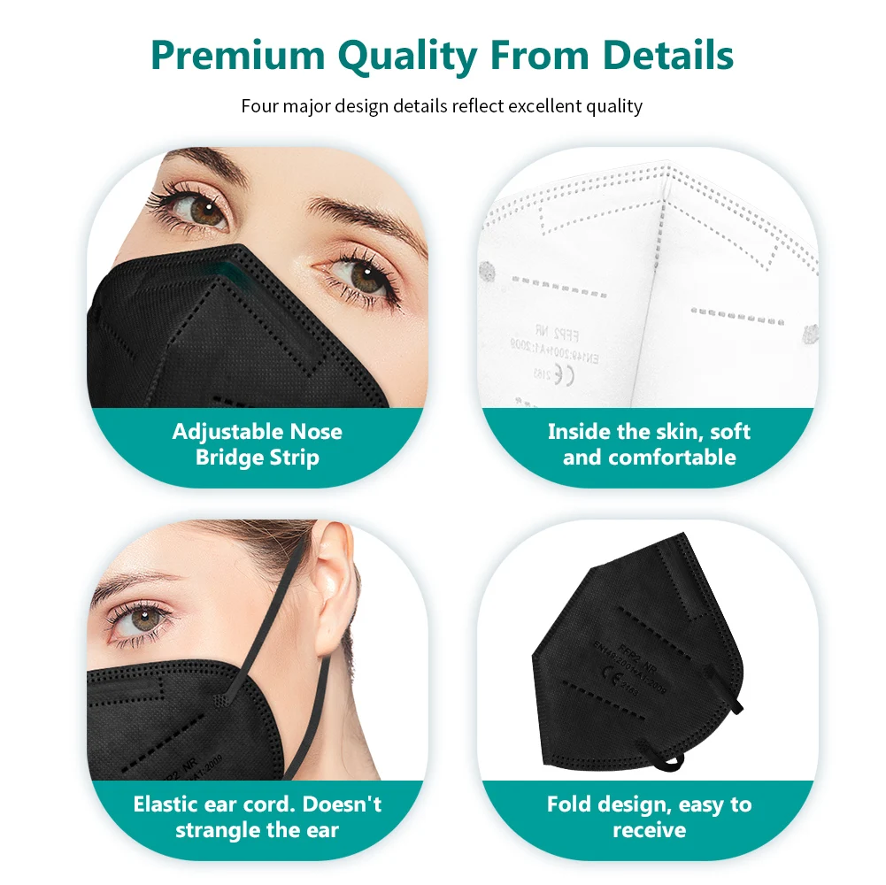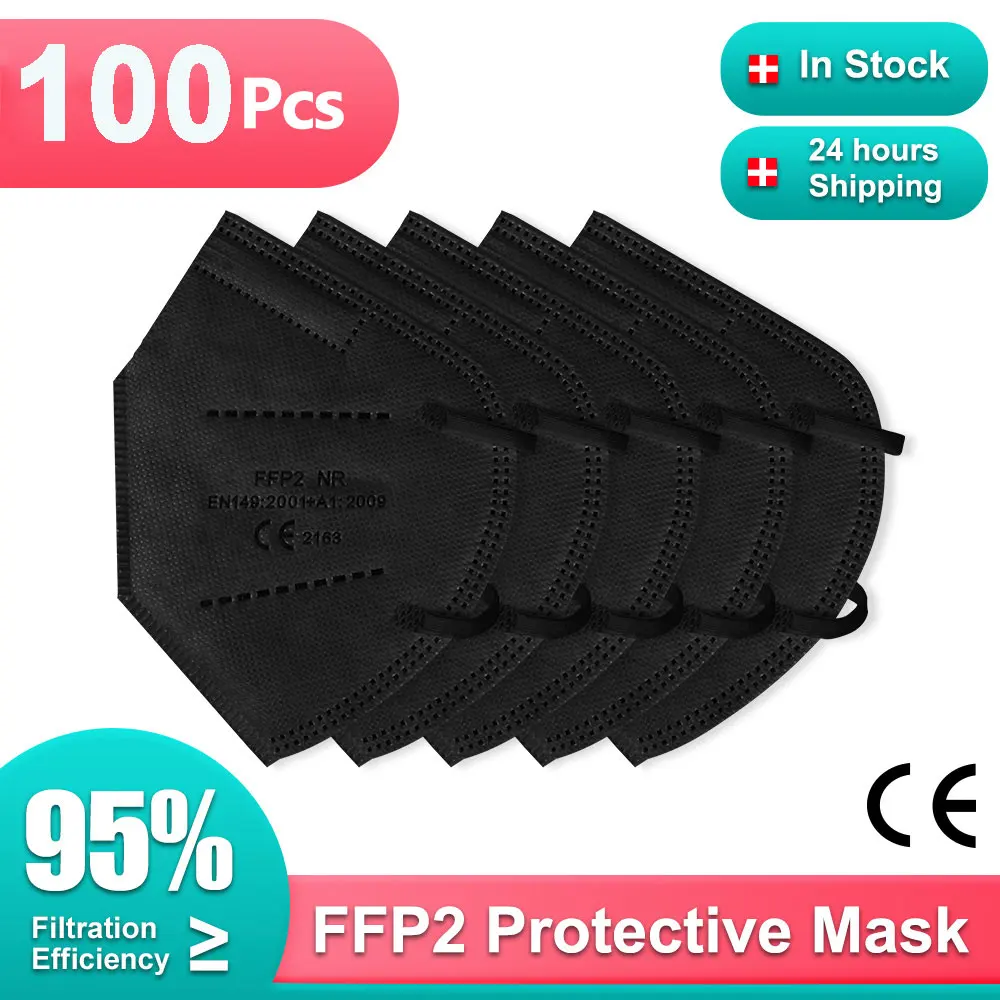 FFP2 маска черные маски для лица KN95 Mascarillas взрослые 5 слоев ...