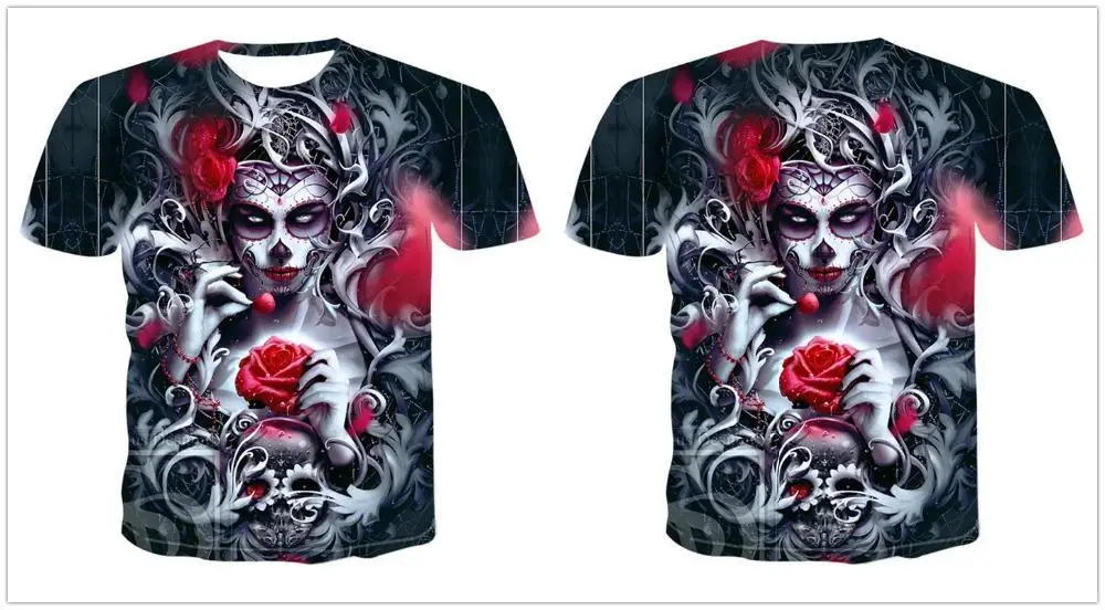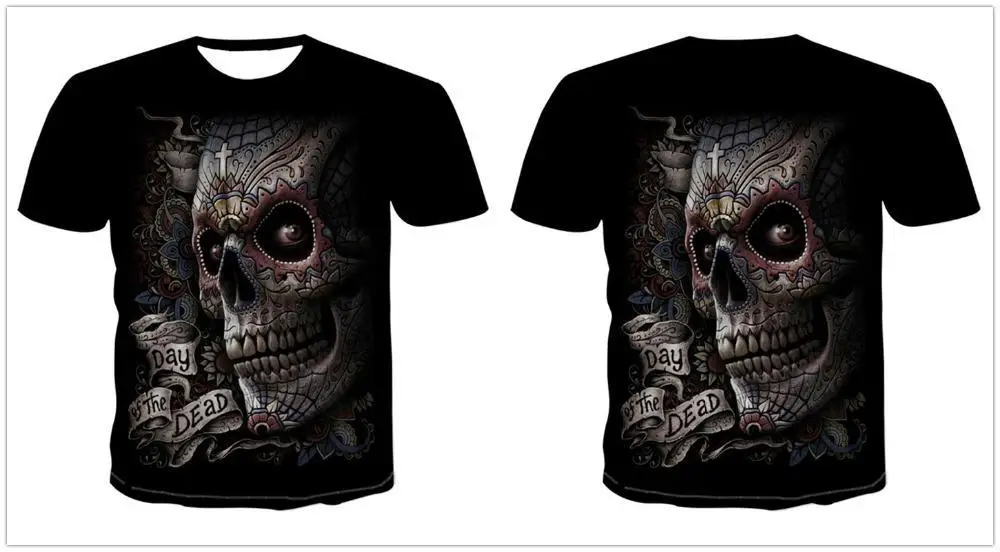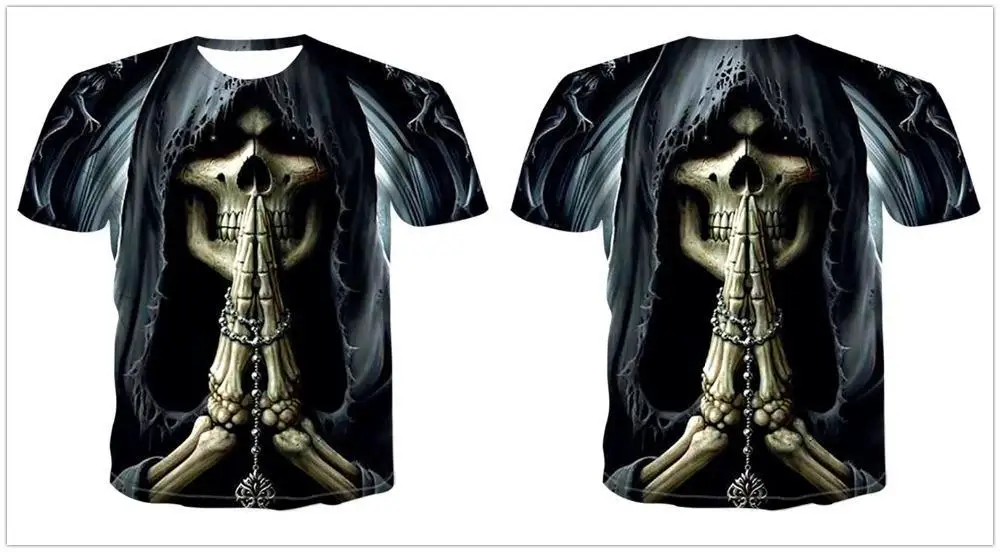 Футболки в стиле панк с 3D черепом, топы, Повседневная Уличная одеж...