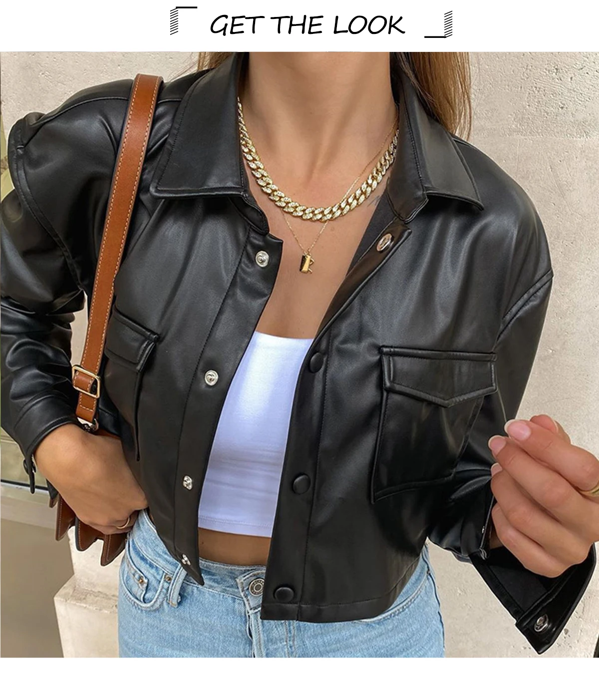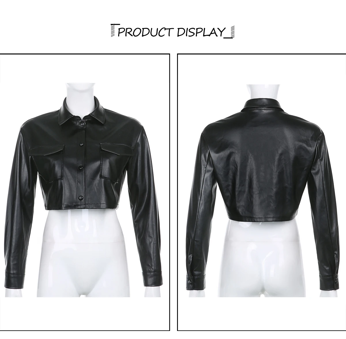 Укороченный женский топ, кожаная куртка, однотонная чернаябелая кур...