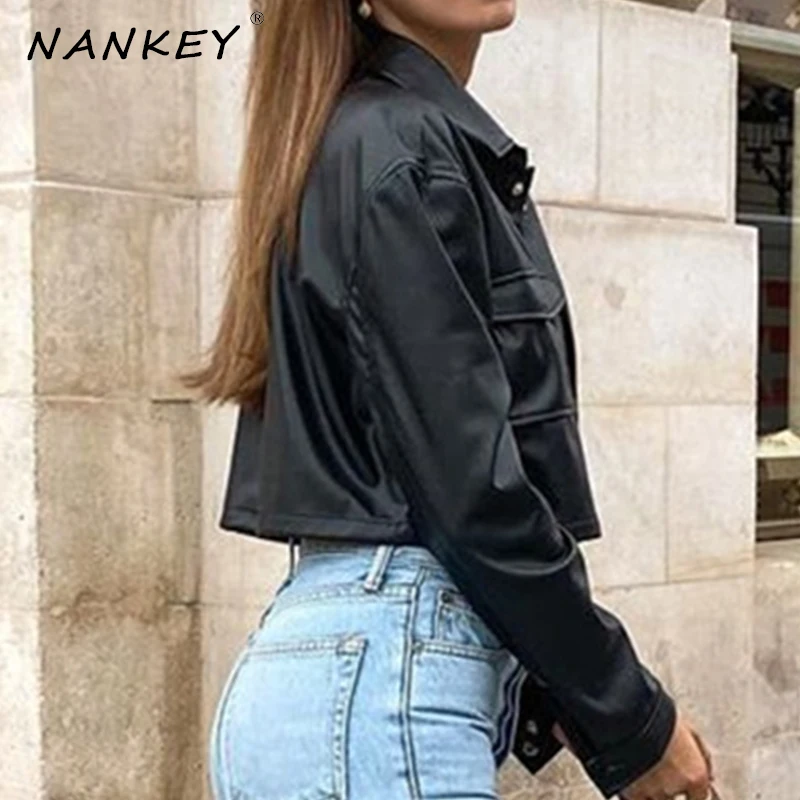 Модная укороченная куртка из искусственной кожи для женщин в винтаж...