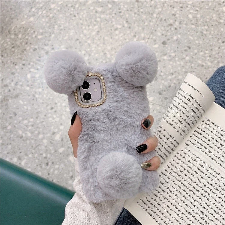 Зимний теплый плюшевый чехол из кроличьего меха для iPhone 13 Pro M...