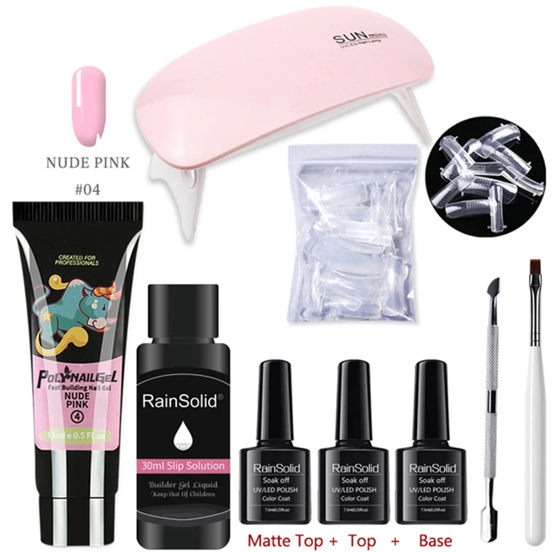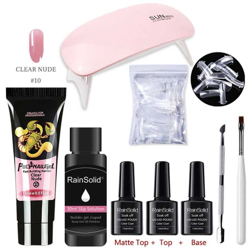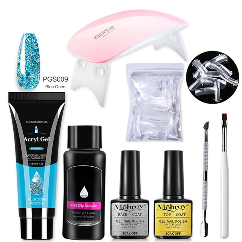 Набор Полимерных Гелей для ногтей, 15 мл, 6 Вт, УФ-светодиодная лампа, полный маникюрный набор для быстрого наращивания, набор полигелей для наращивания ногтей
