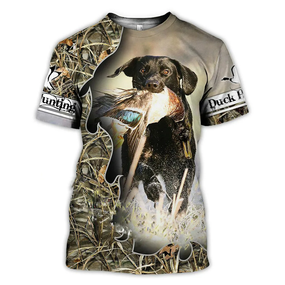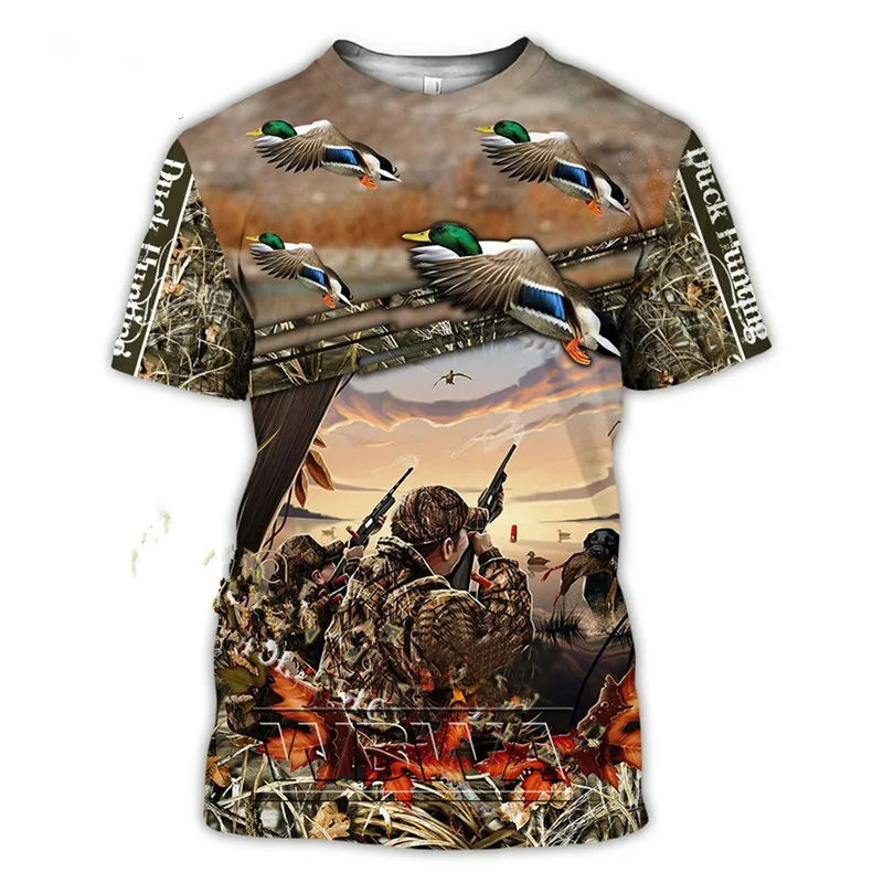 3D принтом Мужская футболка утки для охоты искусство с коротким рук...