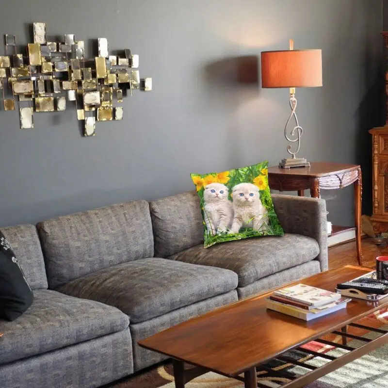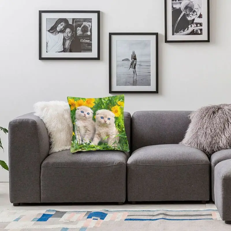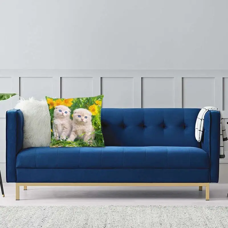 Роскошный милый шотландский складной чехол для дивана, сидящего на цветочном Луге, чехол для подушки, домашний чехол для спальни с кошкой и котенком