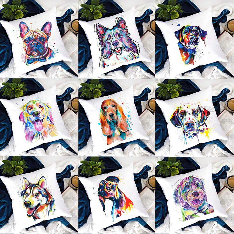 Наволочка для подушки, модная, разноцветная, с принтом собаки, для ...