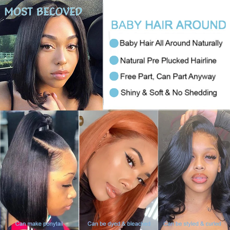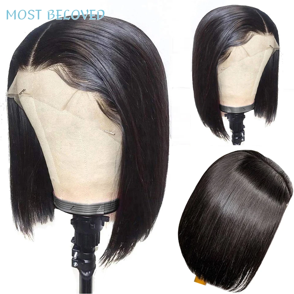 Короткие парики для Боба, прямые человеческие волосы, парики для черных женщин, перуанские короткие парики для Боба, предварительно выщипанные Натуральные Цветные кружевные фронтальные парики
