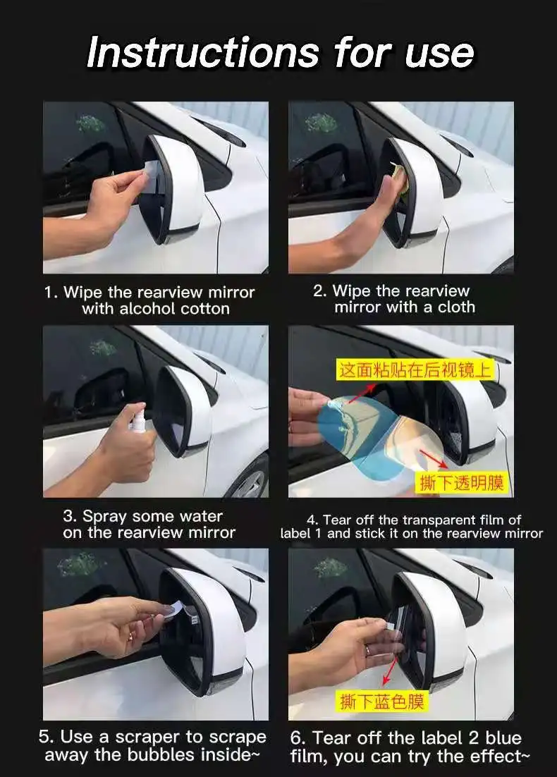2 шт.компл. противотуманная Автомобильная наклейка, Автомобильное Зеркало, прозрачная пленка для окна, водонепроницаемая Защитная пленка для автомобильного зеркала заднего вида