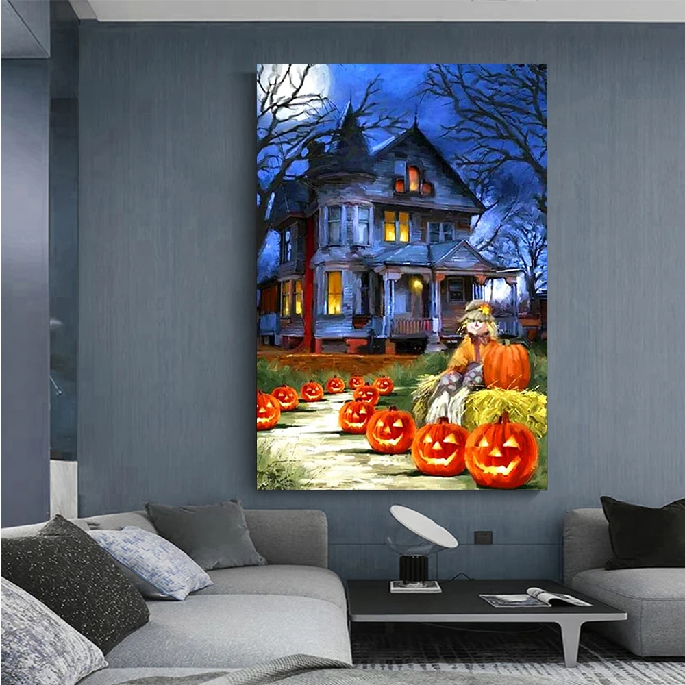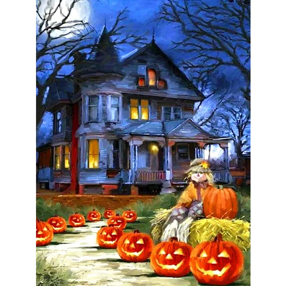 Набор для алмазной живописи Домик Тыквы на Хэллоуин 5D сделай сам, полная Алмазная вышивка крестиком стразы, подвесное настенное украшение