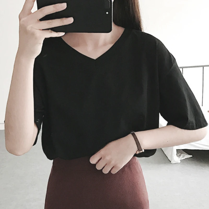 Однотонная Повседневная Свободная футболка, корейские женские топы ...