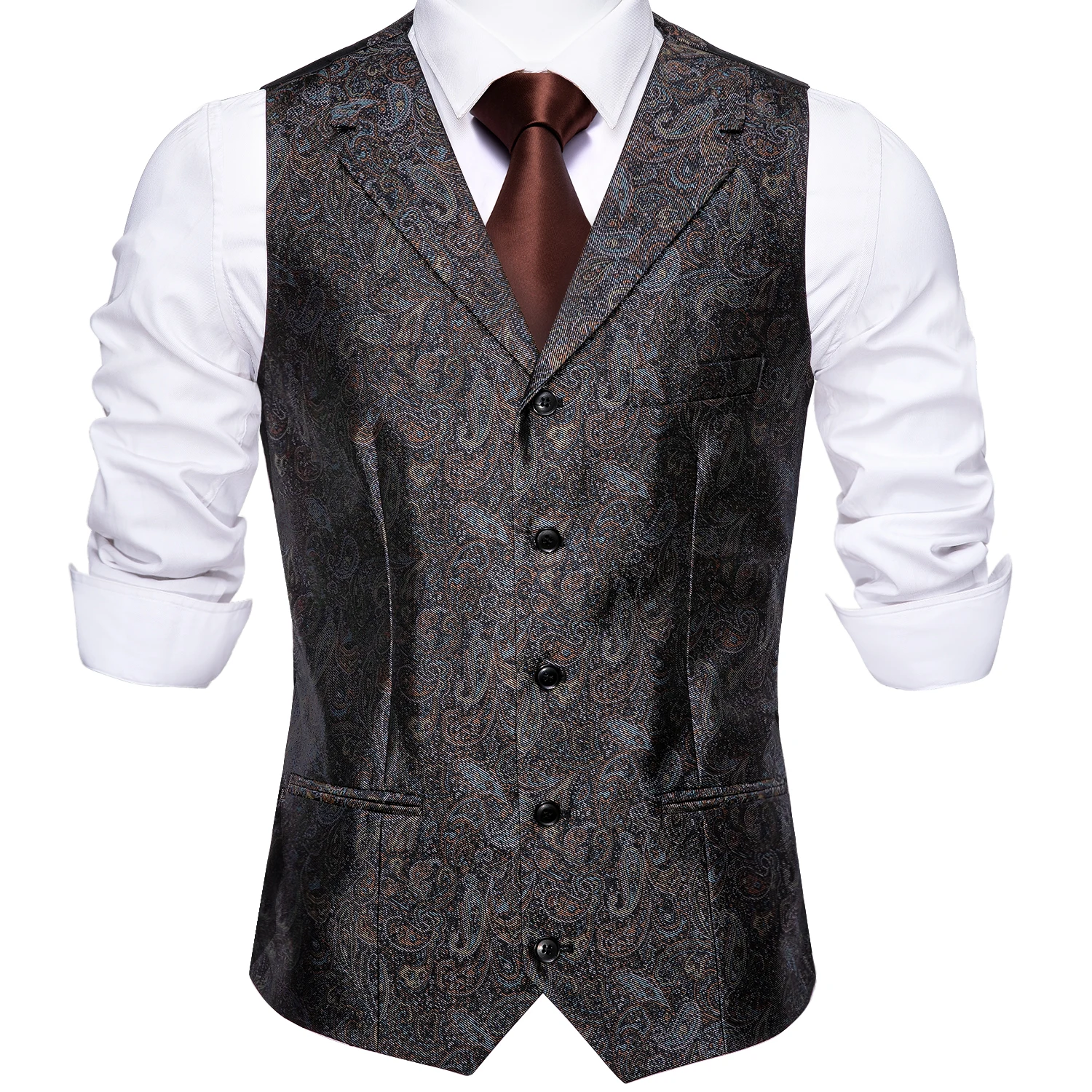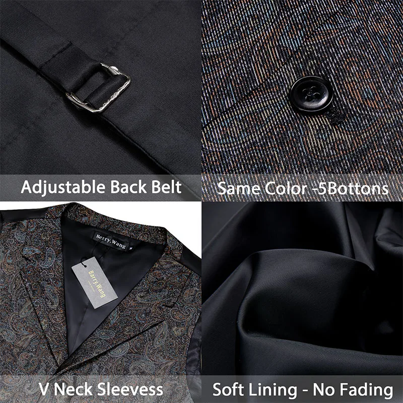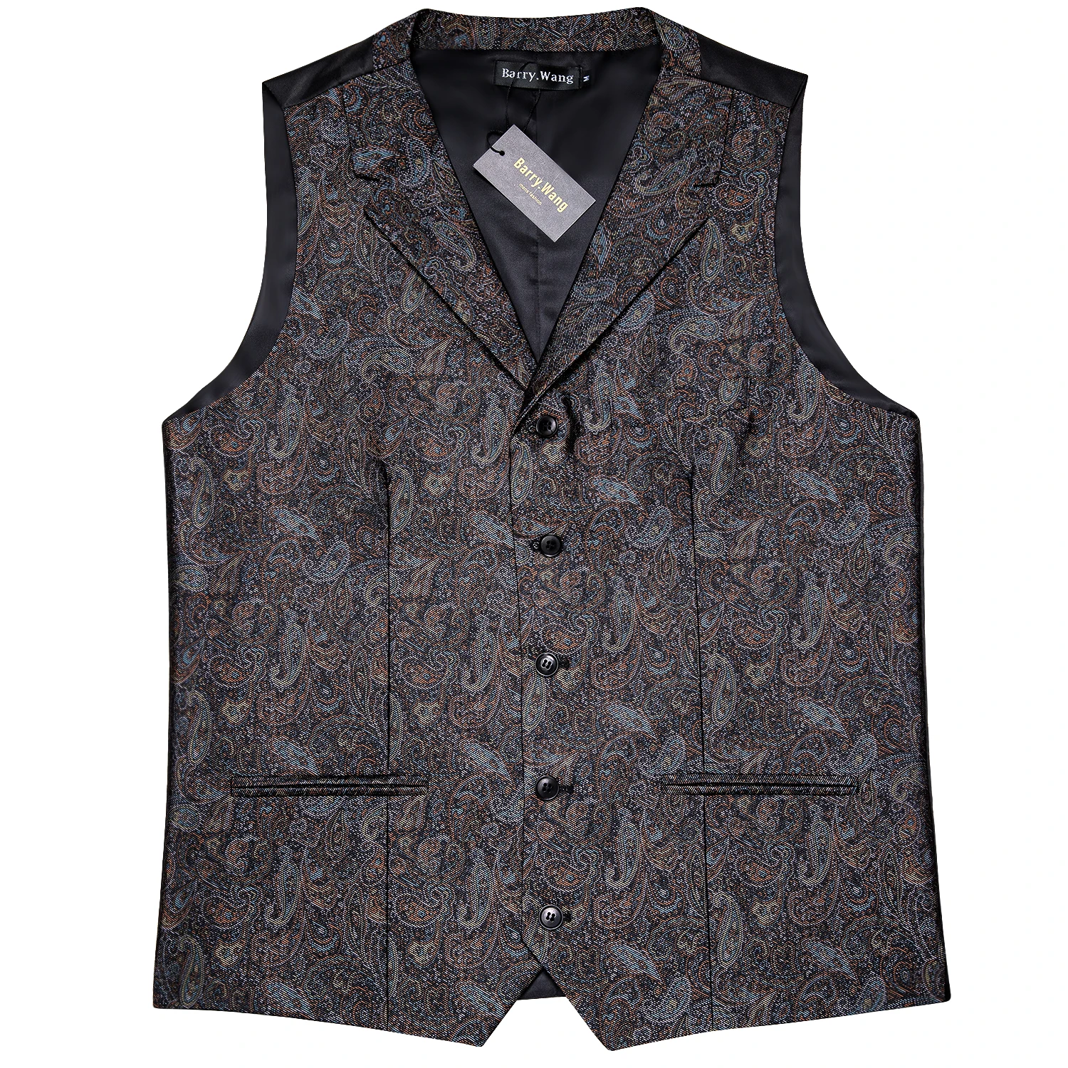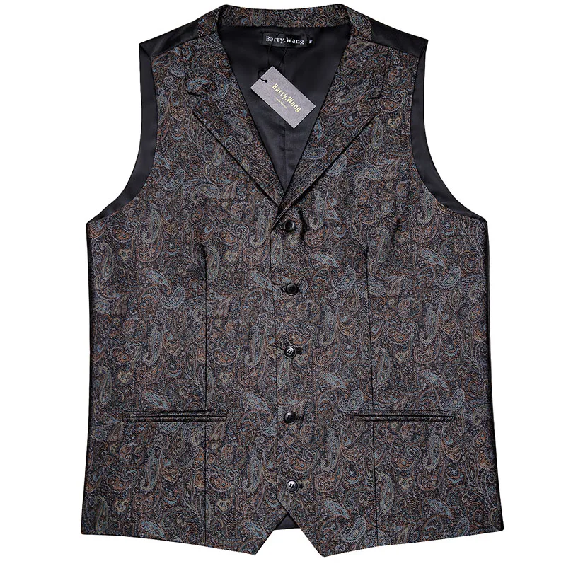 Мужской костюм Barry.Wang, жилет с рисунком Пейсли, шерстяной костюм с V-образным вырезом, 3 кармана, жилет в клетку, галстук, официальный комплект для отдыха, M-2201