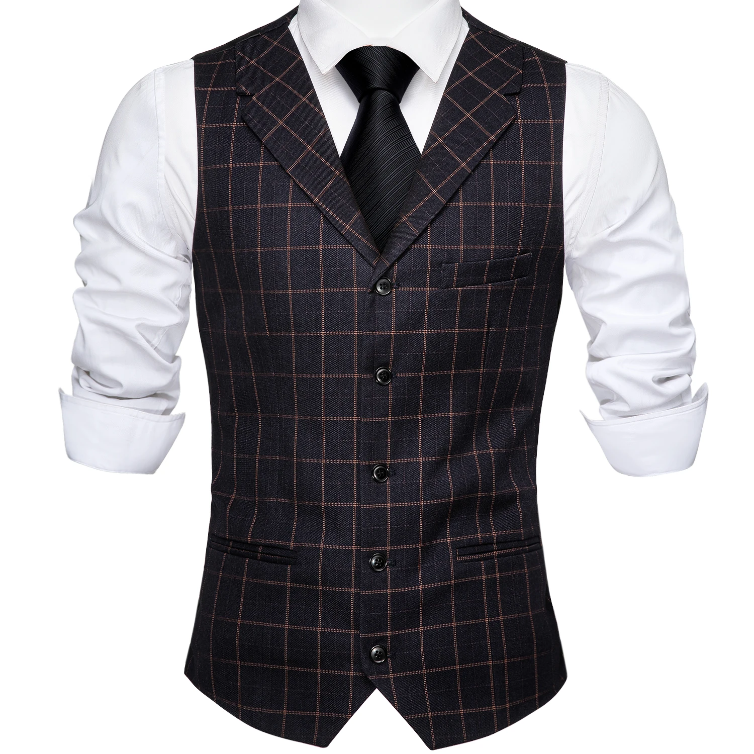 Мужской коричневый клетчатый жилет Barry.Wang, Приталенный жилет с ...