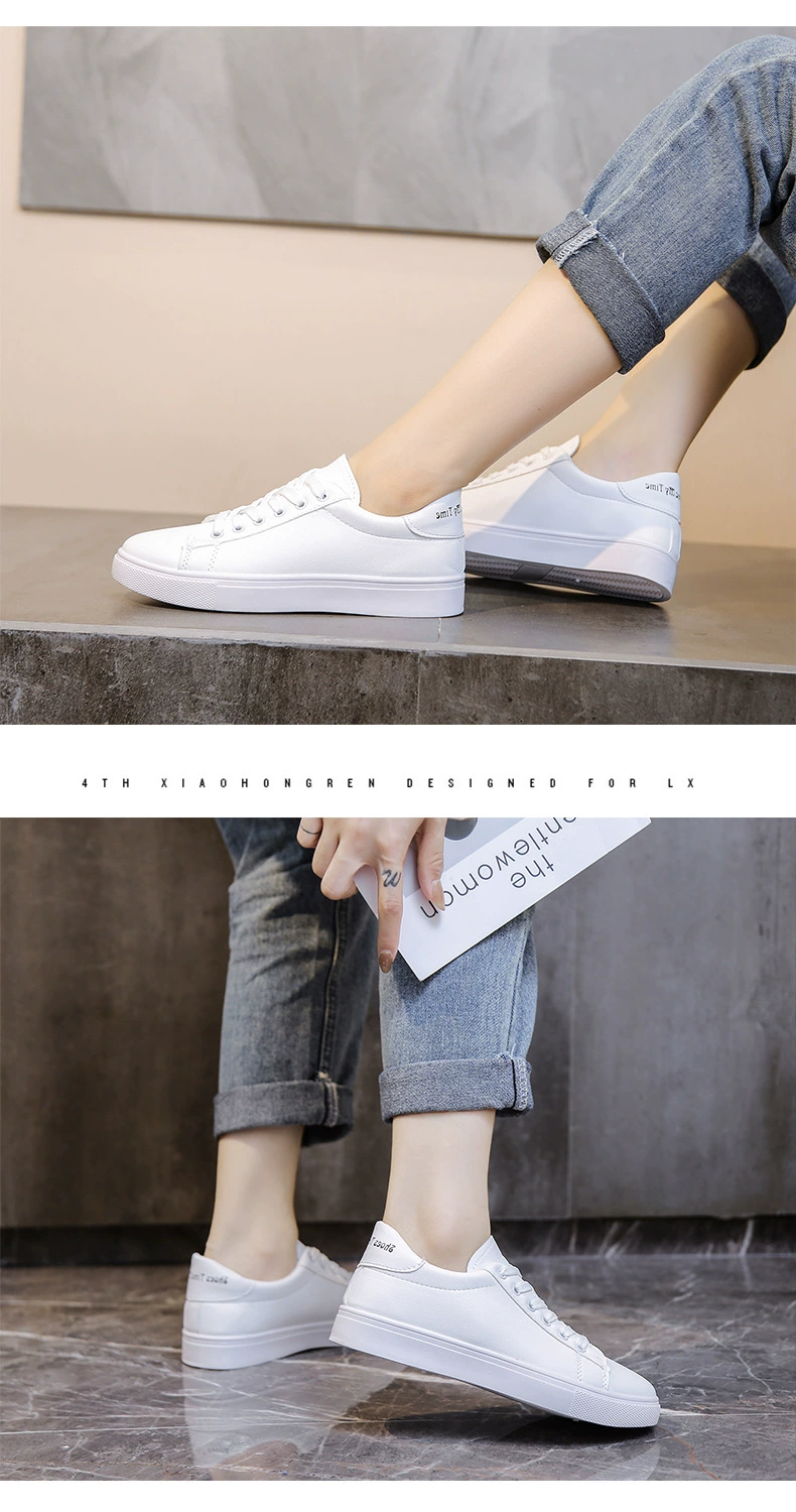 Женские кожаные кроссовки, Вулканизированная подошва, на шнуровке, повседневная обувь для скейтборда, белые, весна-осень-лето