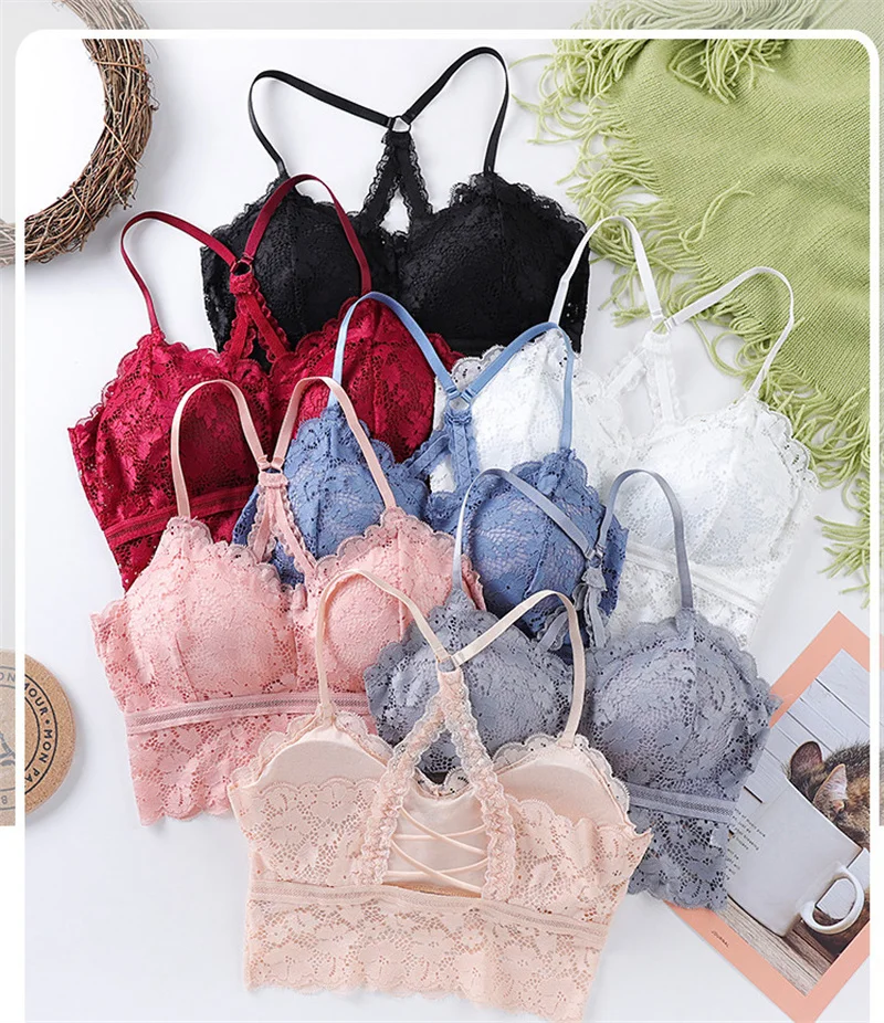 Женский кружевной бюстгальтер без косточек, с перекрестной красивой...