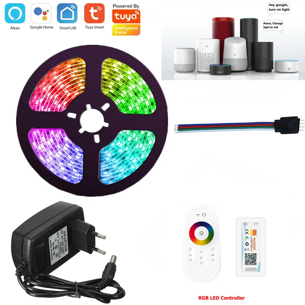 DC12V Светодиодный ленточный светильник Tuya WiFi контроллер водонепроницаемая лампа лента 5 м 10 м 30 м SMD5050 гибкая лента с телефоном Alexa Google Voice