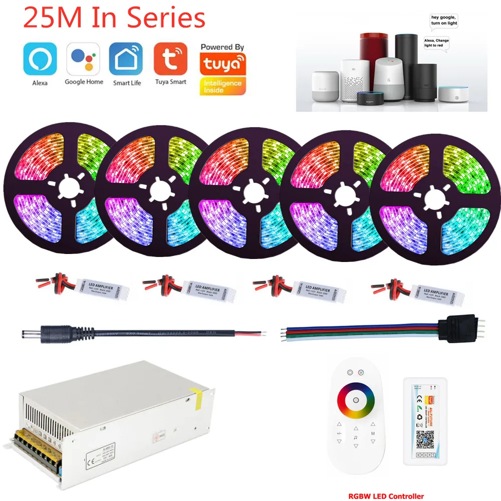 Светодиодная лента SMD5050, водонепроницаемая лампа с контроллером Wi-Fi, с функцией телефона, Alexa, Google Voice, 12 В постоянного тока, 5 м, 10 м, 30 м
