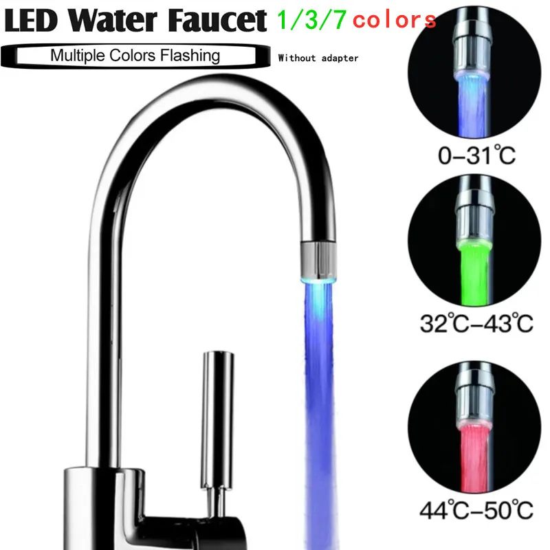 Светодиодная насадка для крана, меняющий мигание 7 цветов, аэратор с датчиком температуры, водосберегающий, аксессуары для кухни и ванной комнаты