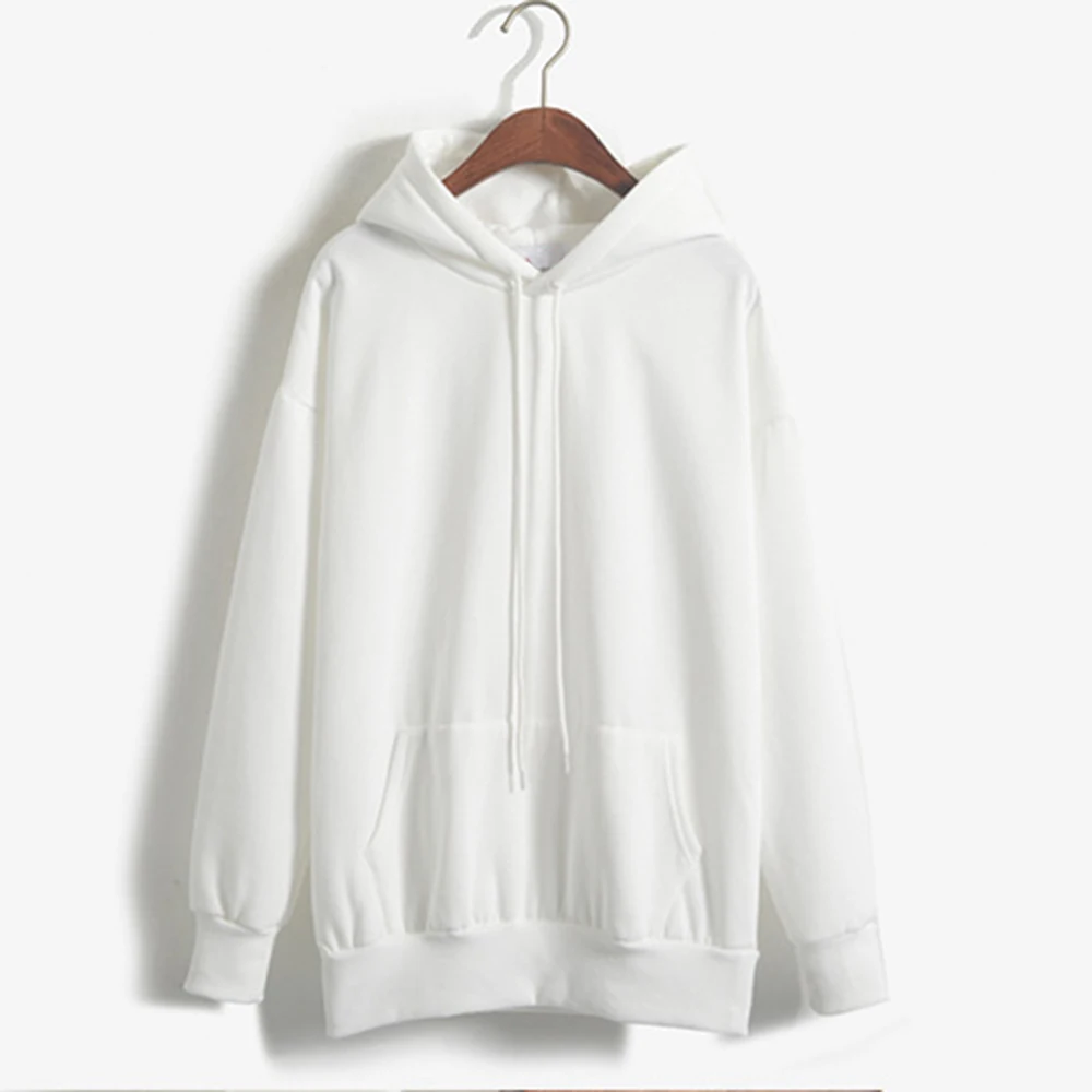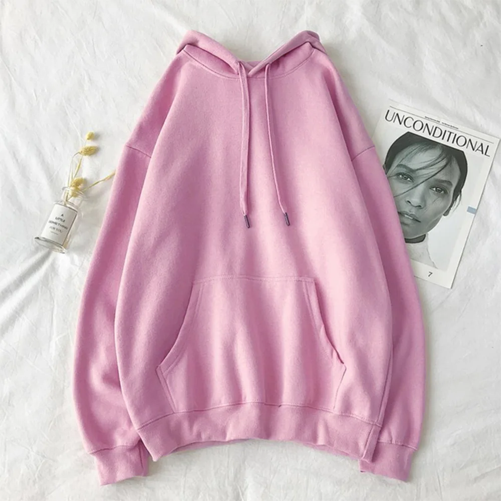 Толстовки в стиле Харадзюку, однотонные Топы с капюшоном, женские свитшоты, Повседневный пуловер, топы с длинным рукавом, свободные толстовки большого размера, уличная одежда