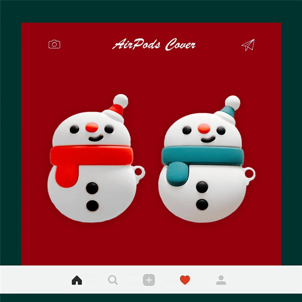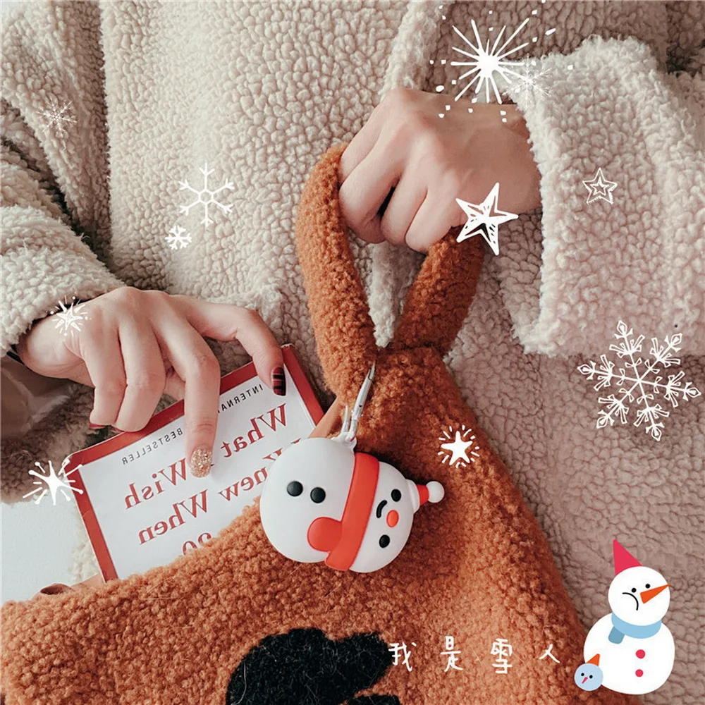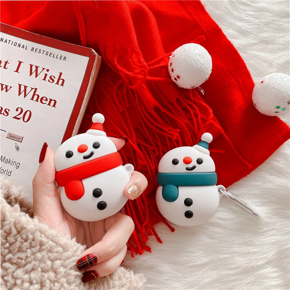 Мультяшный силиконовый чехол для наушников Apple Airpods 1 2 3D, милый Рождественский чехол для наушников с изображением снеговика, украшение для зарядного устройства