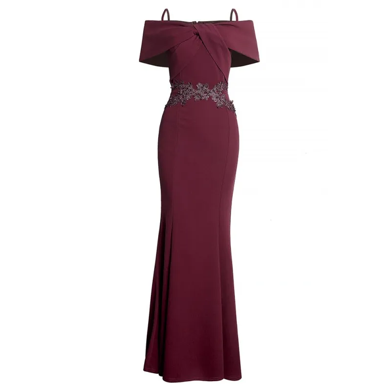 Женское платье-макси с вырезом-лодочкой и открытыми плечами