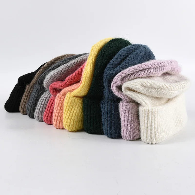 Зимние мягкие вязаные облегающие шапки из кроличьего меха, Женская лыжная шапка, шапка, Корейская версия, однотонная теплая вязаная шерстяная шапка, Повседневная шапка