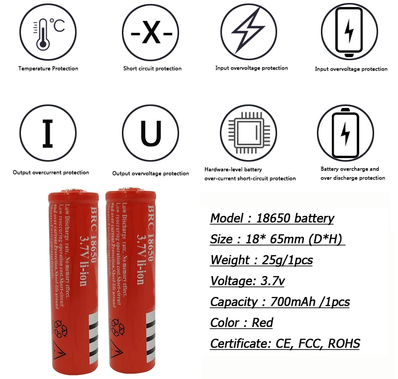 Источник питания: 2x18650 литий-ионная 3,7 V Батарея