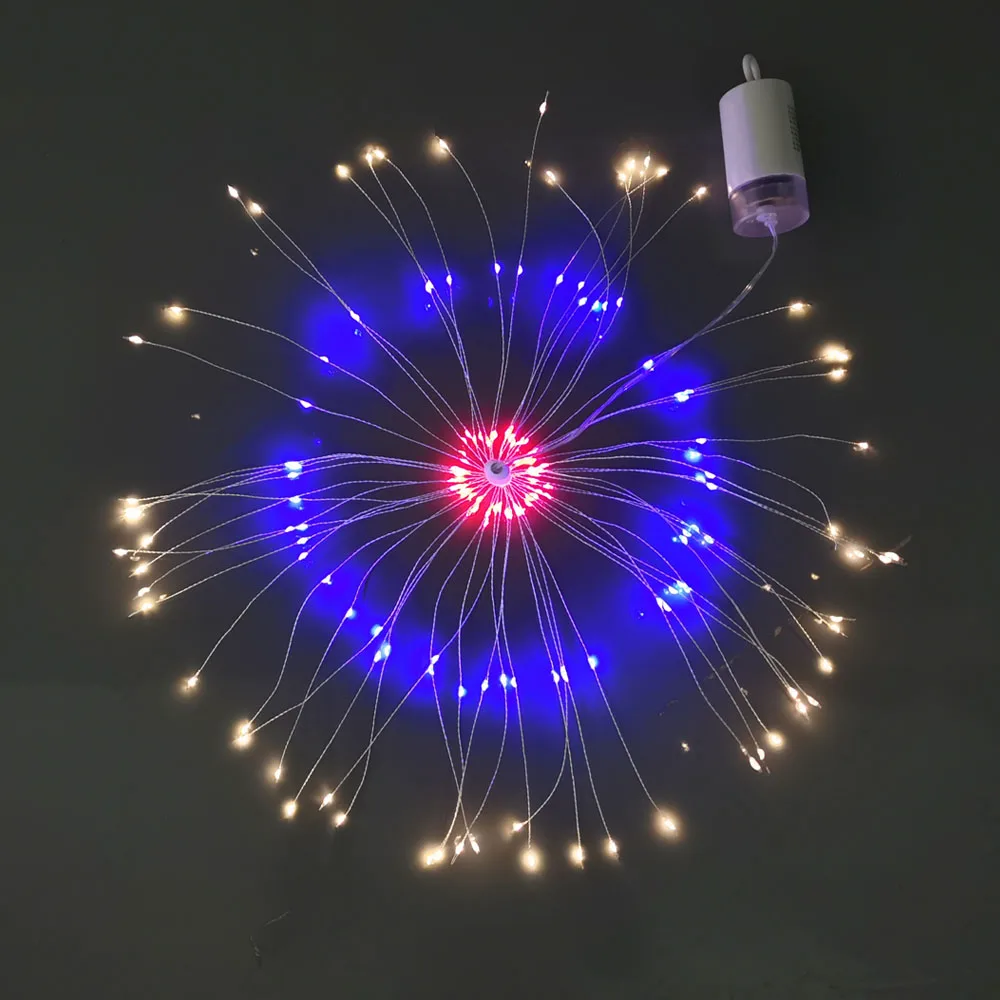 Уличная фейерверк-гирлянда с 180 светодиодами, 8 режимов, пульт дистанционного управления, Подвесная лампа Starburst, Сказочная гирлянда из медного провода, Рождественский Декор